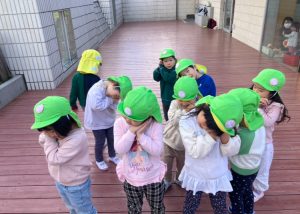 そのあとはウッドデッキにいき「おおかみさん今何時?」をしました。