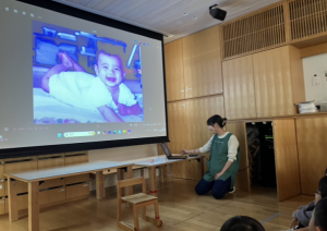 お楽しみでは、幼少期の写真を見てどの保育士かクイズをしました。思っていたよりもみんな当てていて驚きです(笑)先生たちも小さい時から大きくなって今があるということをわかってもらえたかな??