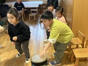 活動の最後には1年間で聞く力や見る力、考える力が育ったことを褒めてもらった子ども達。本当にもう少しで進級・就学ですが、音楽あそびに取り組む姿勢にも成長を感じました。