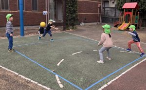今日は礼拝の後、グラウンドで運動あそびをしました。