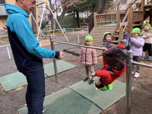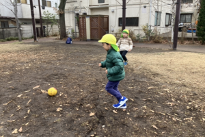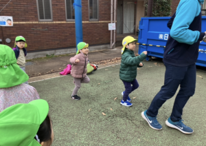 新年最初の運動あそびはグラウンドで行いました。
