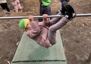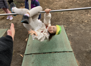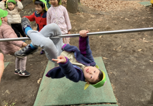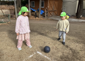 ブタの丸焼きジャンケン、サッカーでも、積極的に挑戦する姿がたくさんありました!途中、みんなの運動あそびの様子に興味をもったすみれさんが一緒にやりたいとばらさんのもとへくる場面もあったのですが、「こうやってやるんだよ」と優しく教えてあげる様子もあり、微笑ましかったです♩
