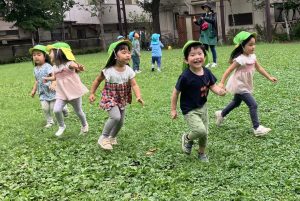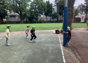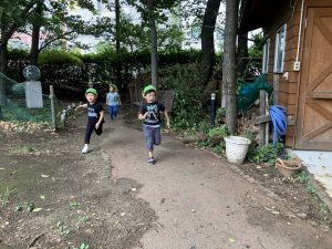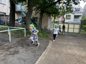 グラウンドではかけっこをしてから遊び始めました。「いちについて」「よーい」のときに先生のポーズを真似してからスタート!よく見ていましたよ☺