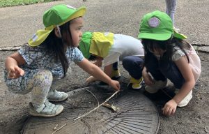 ミーンミーンという声だけでなく、スイースイーという声が聞こえるということに気付く様子もありました。セミにも色々な種類がいて、鳴き声も違うということを知るきっかけになったようです。