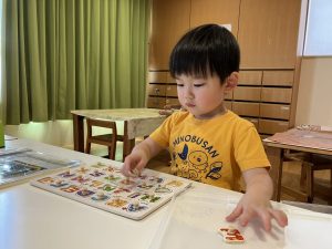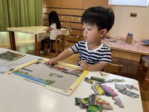 お部屋ではパズルやちぎり絵をして一人ひとりが集中して遊びました。