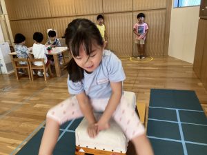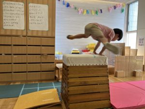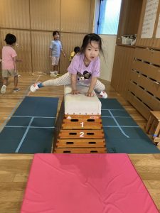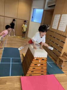 跳ぶ力を持っている子どもたち。あとはロイター板のタイミングと勢いで高い段が跳べそうな雰囲気。