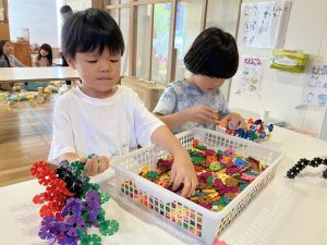 お友だちとどの色と組み合わせたらいいか相談。配列も考えてとてもきれいにできていました。