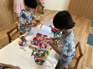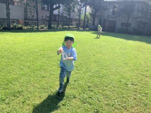今日はお部屋でじっくり遊び、グラウンドでもほどよく体を動かせるよう、半数ずつ交代制で過ごしました。