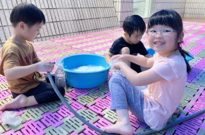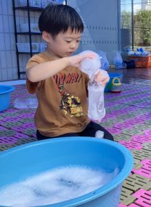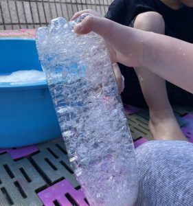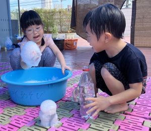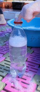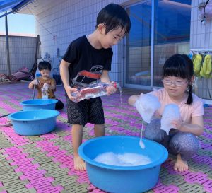 泡を流したあとのペットボトルには泡が残り、この泡を「宝石」と表現していました♪様々な変化を味わい、「またやりたいね!」という子どもたちの声からも楽しかったことが伝わってきました!