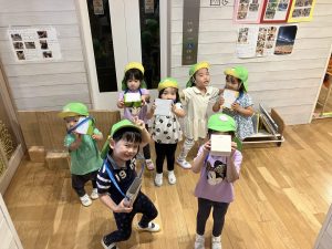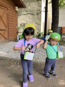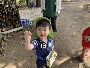 今日は昨日作ったお散歩バッグを持ってグラウンドに出かけました。(昨日作っていない子は出発前に作りました)
