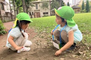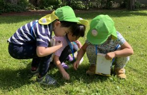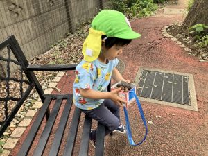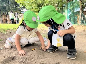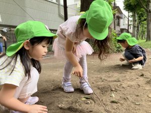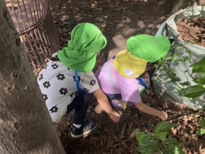 お昼ご飯の前に少しだけグラウンドにも行きました。ダンゴムシやアリとの出会いを楽しんだり、