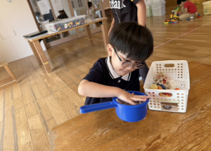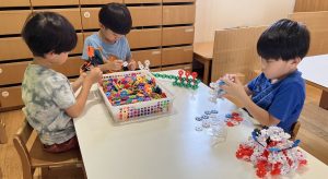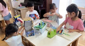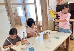 廃材を使用した製作では、クレーンゲームをつくったようです!ひまわりタイムの時間にかけても継続して製作を楽しんでおり、何やらお店を展開させる?様子です♩