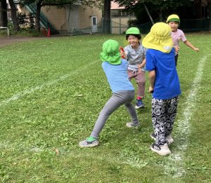 ソーラン節を踊った後は、室内で遊び、その後グラウンドへ行きました。