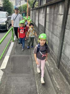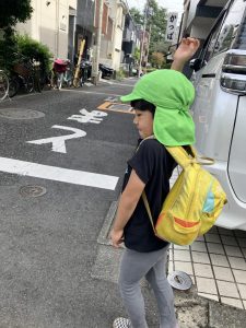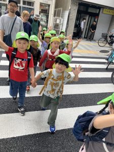 今日は待ちに待ったお芋ほり。天候にも恵まれ、涼しさの中行ってきました!今日も先頭は子どもたちに歩いてもらいました。初めて歩く道でしたが、信号や横断歩道を前にするとしっかりと止まり、左右確認をしてくれる先頭さんです。
