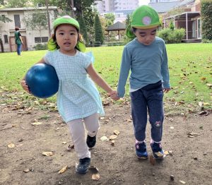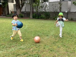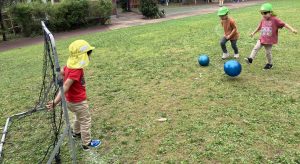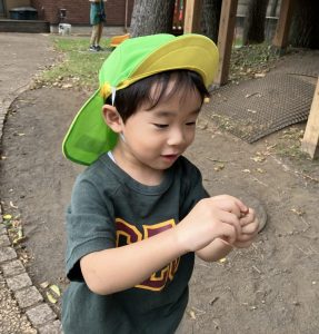その後は、みんなでグラウンドに行きました。心地よい気候の中、草花、木のみ、生き物に触れることや、体を動かすことを楽しんでいました!