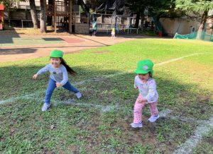 朝の会でプレイデイでした「かけっこ」とひまわり組さんがした「リレー」をグラウンドでやろう!と伝えると子ども同士で顔を見合わせて「やったー!!」と喜び合う姿がありました。