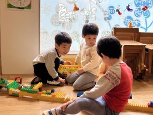 「これみて!」「つぎ~ちゃん、~くんだよ」と関わりあい、体を十分に動かしながら遊ぶ姿が見られました