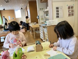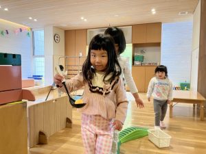 傍らでは、運動あそびやブロック、おままごと、塗り絵をして過ごしています。