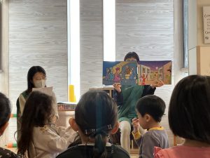 今日はお部屋でページェントごっこをしました。昨日、昨年度の降誕劇のDVDを鑑賞しましたが、アドベント礼拝が始まったばかりで、園長先生からの聖話もまだ途中なので、紙芝居を使用して降誕劇の流れを改めて伝えました。