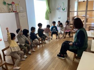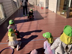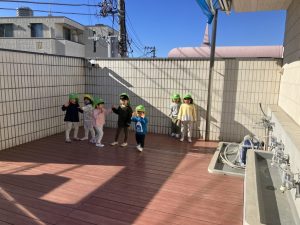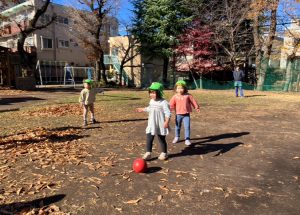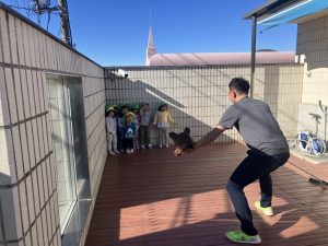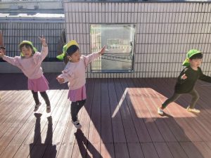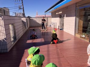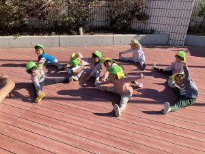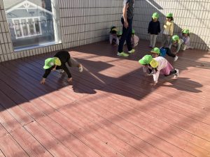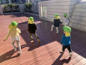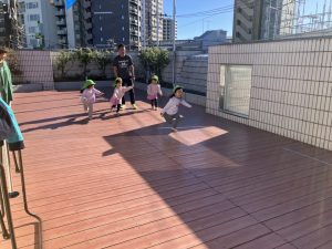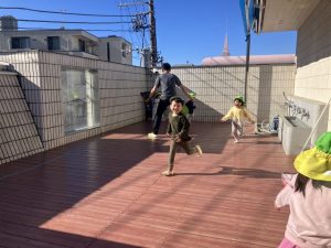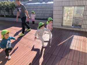 礼拝後はウッドデッキでの運動あそびでした。今日は走る活動が多く、たっぷり全身運動をして体が元気になりました。