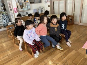 礼拝の後はクリスマス会の振り返りをしました。感じたことやみんなに伝えたいことを聞くと「練習より上手くできて嬉しかった」「ママとパパが見に来てくれて嬉しかった」と様々な思いを教えてくれました。「疲れた」という声も(笑)疲れるほど頑張った証拠ですね。明日は自由画をする時を持ちます。みんながどのように表現するかを楽しみにしています♪