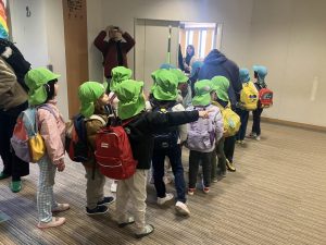 今日は駒沢小学校の学校内見学へ行ってきました。(直前の時間の変更にも関わらず、早めのご登園ありがとうございました。)以前交流をした駒沢保育園のお友だちに加えてキッドステイ保育園さんと一緒に見学をしました。保育園と比べると、小学校は広く、たくさんのお部屋がありますね。音楽室、理科室、図書室、体育館、保健室…と色々なお部屋を見せてもらいました。小学生のお友だちはとてもやさしく「中に入っていいよ~」「今こんなことしていたんだよ(1人ひとりが物語を考え本にしていまいました)」と歓迎してくれていました。始めはどきどきな様子でしたがお兄さんお姉さんの優しさに子どもたちも心を開き始めていましたよ。またオリービア保育園の多くの卒園生にも会うことができ「○○くーん」「○○ちゃんだ」と再会を喜んでいました♡卒園生のお友だちもトイレへ案内してくれるなど、保育園での繋がりが小学校でも見られること嬉しく思います。