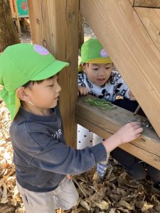 かくれんぼを楽しんだり、ツリーハウスの下で宝石屋さんを開いたりして楽しみました。
