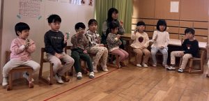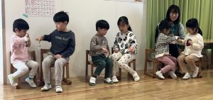 音楽あそびは今年最後ということで、桃原先生に「1年間ありがとうございました。」とあいさつをして、今日の活動を終えました。