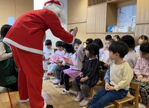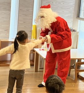 「ありがとう」と伝えたり、「タッチしたい!」との声もあがりタッチで挨拶をしたり、サンタさんとのやりとりを楽しんでいました。