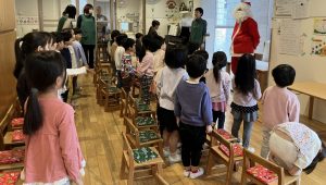 サンタさんが他のところへ出かけて行ったあとも、「来てくれてうれしかったね!」「(すみれ、たんぽぽのお友だちに)サンタさん来たんだよ!!」と笑顔で話していた子どもたちでした。クリスマスは喜びでいっぱいになりますね。