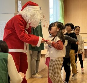 「ありがとう」と伝えたり、「タッチしたい!」との声もあがりタッチで挨拶をしたり、サンタさんとのやりとりを楽しんでいました。