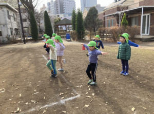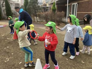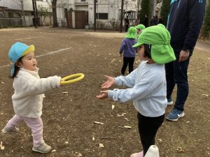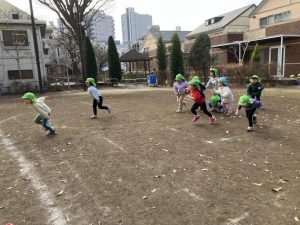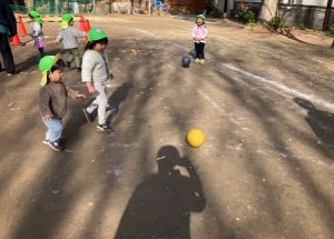 礼拝後、久しぶりにグラウンドで運動あそびを行いました。