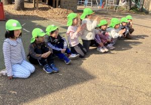 今日もグラウンドで運動あそびをしました。始まりのご挨拶をする時に、前にはたんぽぽ組さんが。「見られている」と感じると、気が引き締まります、、、!かっこいいお兄さんお姉さんのご挨拶を見せてくれました(表情から姿勢まで、素敵でした!)。