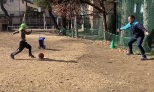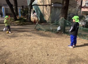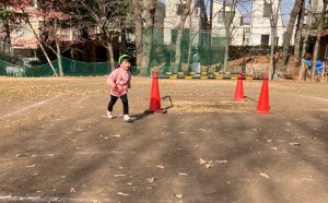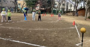 最後はティーバッティング。守備は等間隔に守り、打つ側は空いているところ狙って打ったりと攻守ともに考えながら取り組んでいます。ホームランが出た際には相手チームでも「おめでとう~」と言い合い、ホームランを打った子は照れながらも嬉しそうにしています♩寒さの中ですが、体を動かすこと気持ちいいですね!(石元)