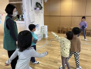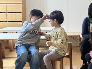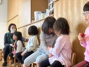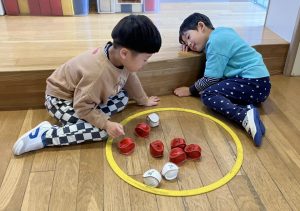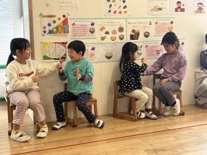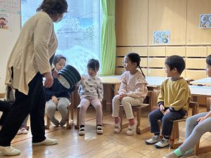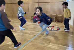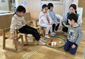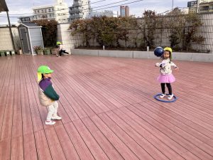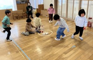 ひまわり組の子どもたちは、馴染みのある遊びですが、ばら組でこの遊びをするのは初めてかな?ルールを知り、回数を重ねるうちにコツを掴みながら楽しんでいましたよ!