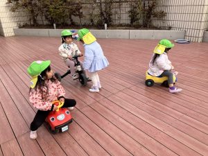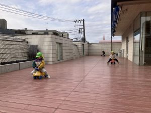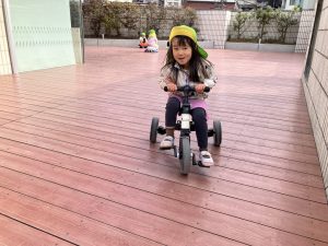 いつの間にか三輪車も上手になっていて驚きです!(岩口)