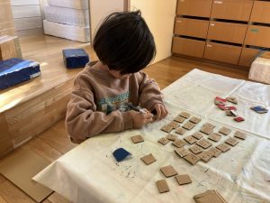 今日はおたのしみ会前、最後の準備の日。朝の会で各グループのできあがってきたものを紹介してから、それぞれの作業に移りました。