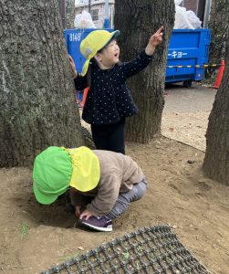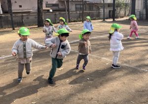 仲間がおににつかまったときに、自分の近くにおにがいるにも関わらず、恐れずに仲間を助けに行く姿がありました!たのもしい!遊びを通して助け合い、お友だちの力の大きさも感じられますね♪自然と「○○ちゃん!○○くん!たすけて!」と名前を呼び合っています。