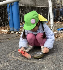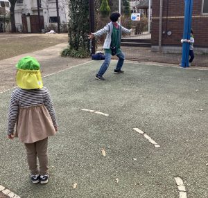 今日は礼拝のあと、グラウンドに行きました。グラウンドでは、まずこおりおにをしました。