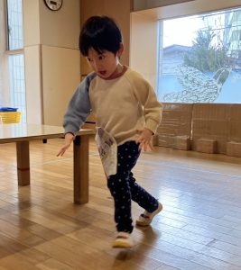 今日はお部屋で「新聞紙遊び」、グラウンドで「ケイドロ」をする選択制にしました。