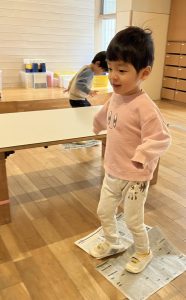足の下に敷いてスケートのように滑って進んだりしました。普段使わない筋肉、神経を使うようで、子どもも大人も真剣です!!