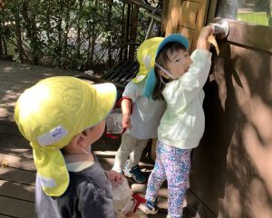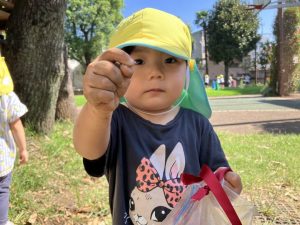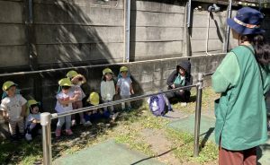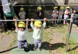 2025/09/26 「今日の様子」 2025すみれ 2025.09.26 今日もグラウンドへ行きました。 みんなで鉄棒に掴まるチャレンジをしたり、カナブンや蝶を見つけて観察もしました👀 (藤原、中村、切田、嶋田)
