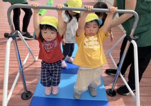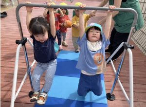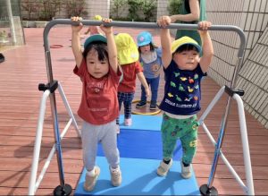 自由遊びでは一歩㎜橋や鉄棒も使って、沢山体を動かしました!
