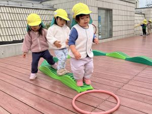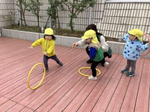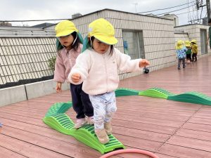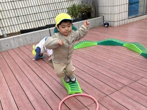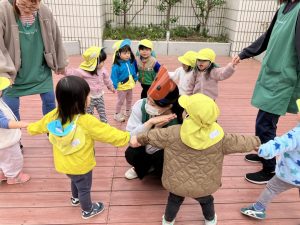 2025/10/24「今日の様子」 2025すみれ 2025.10.24 今日はデッキで過ごしました。むっくりくまさんを楽しむすみれ組さんです☺ 明日はいよいよプレイデイです!保護者の皆さまと一緒にいつもあそんでいるあそびを楽しめたらと思います✨(嶋田・藤原・中村・切田)