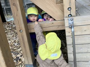 2025/11/13「今日の様子」 2025すみれ 2025.11.13 今日はグラウンドで過ごしました。グラウンドに行く前にはリズム遊びを。プレイデイでも行った動物の真似っこを楽しみました☺(嶋田・藤原・切田・桑原)