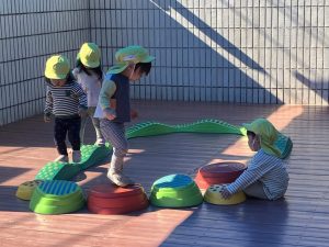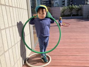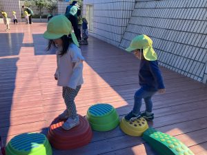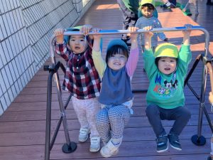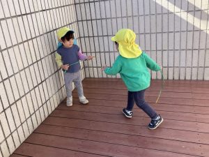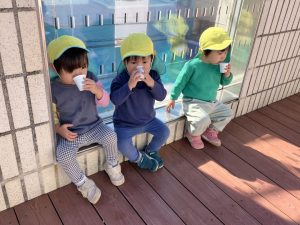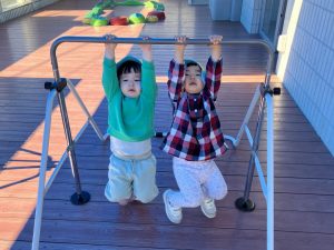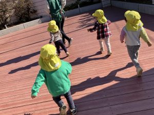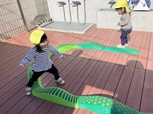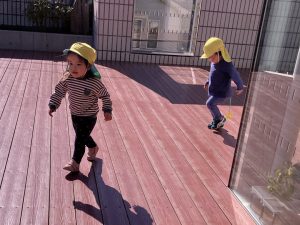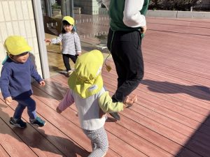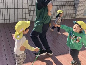 今日はデッキで過ごしました。みんなではじめてしっぽ取り。ニコニコで追いかけてくれましたよ☺(嶋田・藤原・切田)