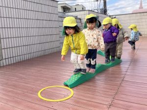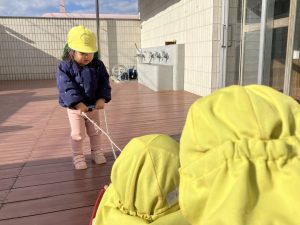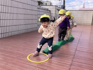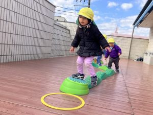 お友だちと一緒に遊ぶことをよく楽しんでいます☺お友だちと一緒の体を動かし笑い合う姿はとっても可愛らしいです♪