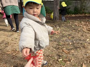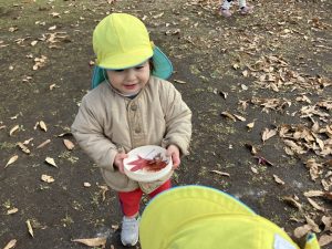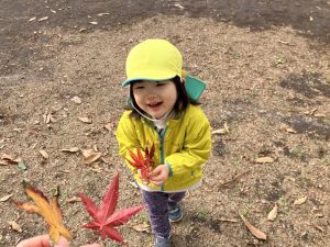 今日はきれいな紅葉をたくさん見つけました。自然物に触れること、新しい葉の名前に触れることを楽しみました!