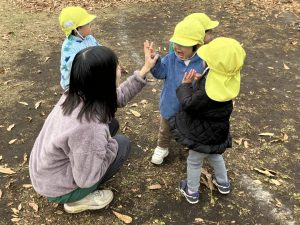 にっこにこでタッチしてくれました。変身かけっこで何に変身したいかを聞いてみると「ちょうちょ」「ピカチュウ!」など好きなものを教えてくれましたよ☺