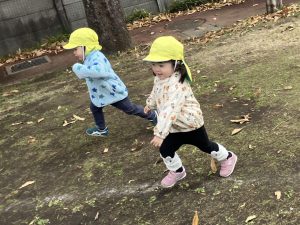 今日はグラウンドへ行きました。「よーいどん!」からスタート。
